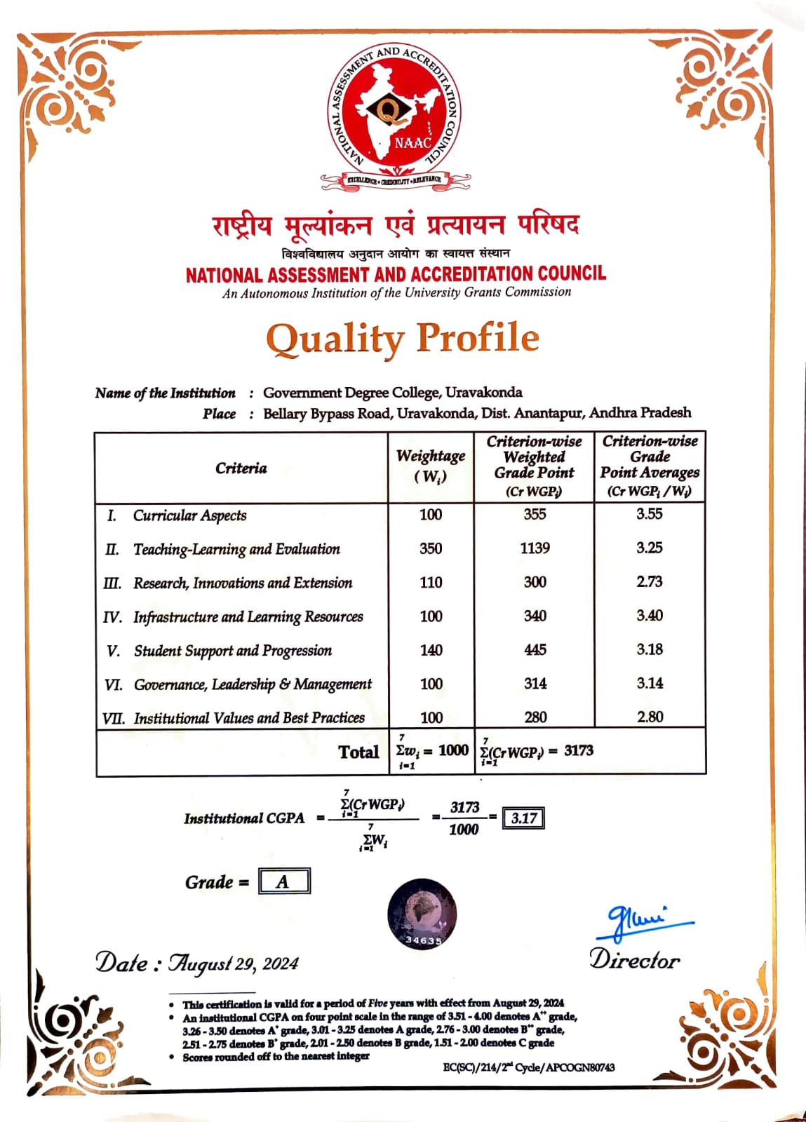 NAAC Quality Profile 2024
