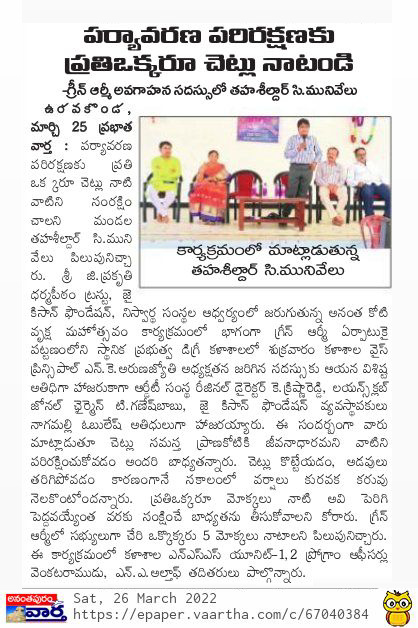 Plantation awareness programme held at GDC,Uravakonda by NSS on 25-03-2022