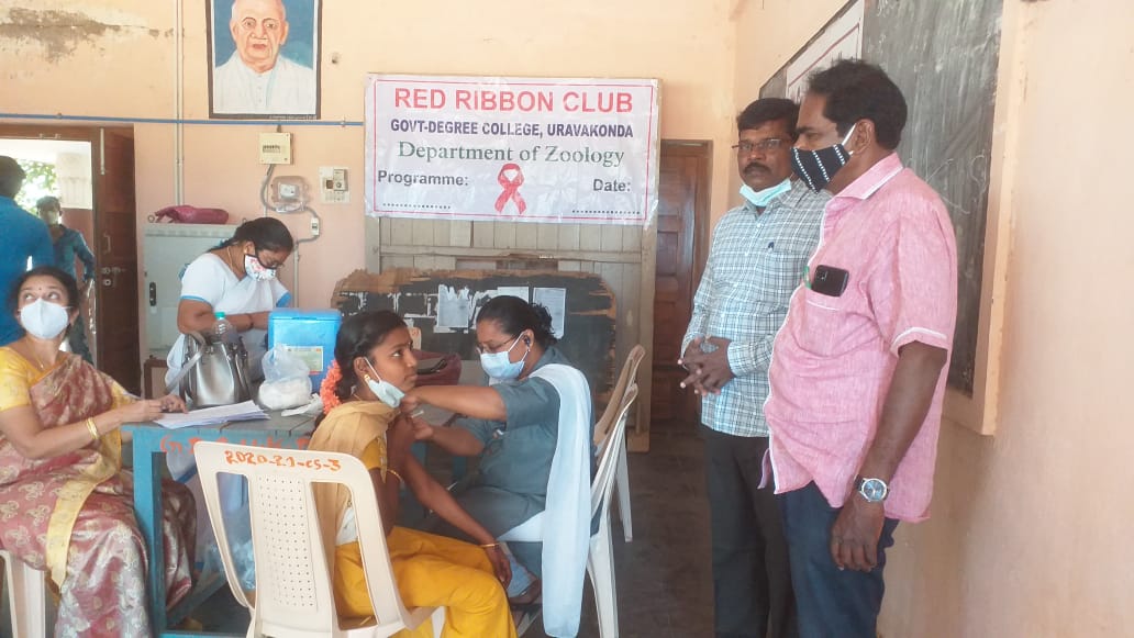 Corona Vaccination drive held at GDC, Uravakonda on 22-01-2022.